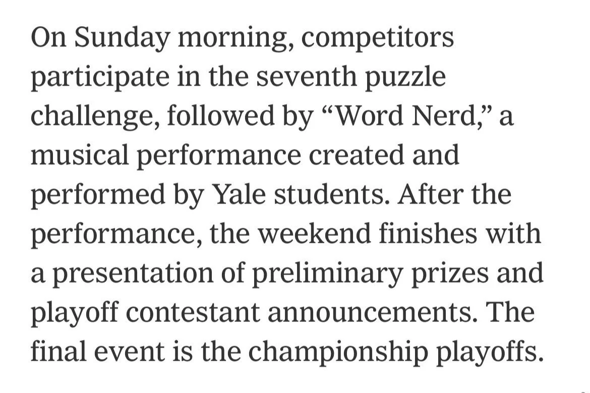 Mention of Word Nerd in the New York Times after a performance at the 2022 American Crossword Puzzle Tournament.